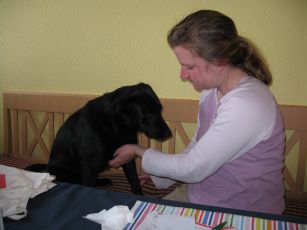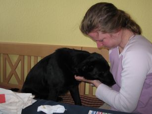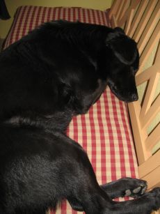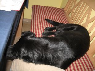 mich ja schon was kleiner machen als wie auf meinem Hundekissen.