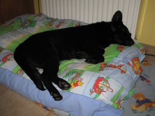 Betten aufm Boden an. Hundekissen! Aha. Schön weich. Und warm.
